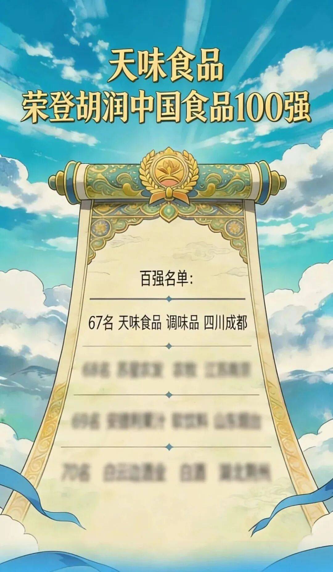 天味食物以第67名荣登胡润中国食物100强,旗下包罗家、大红袍、拾翠坊、天车、加点味道、一品尝享、天味食物七大品牌,产物包罗暖锅底料、菜谱式调料、酱料产物等1000多款。